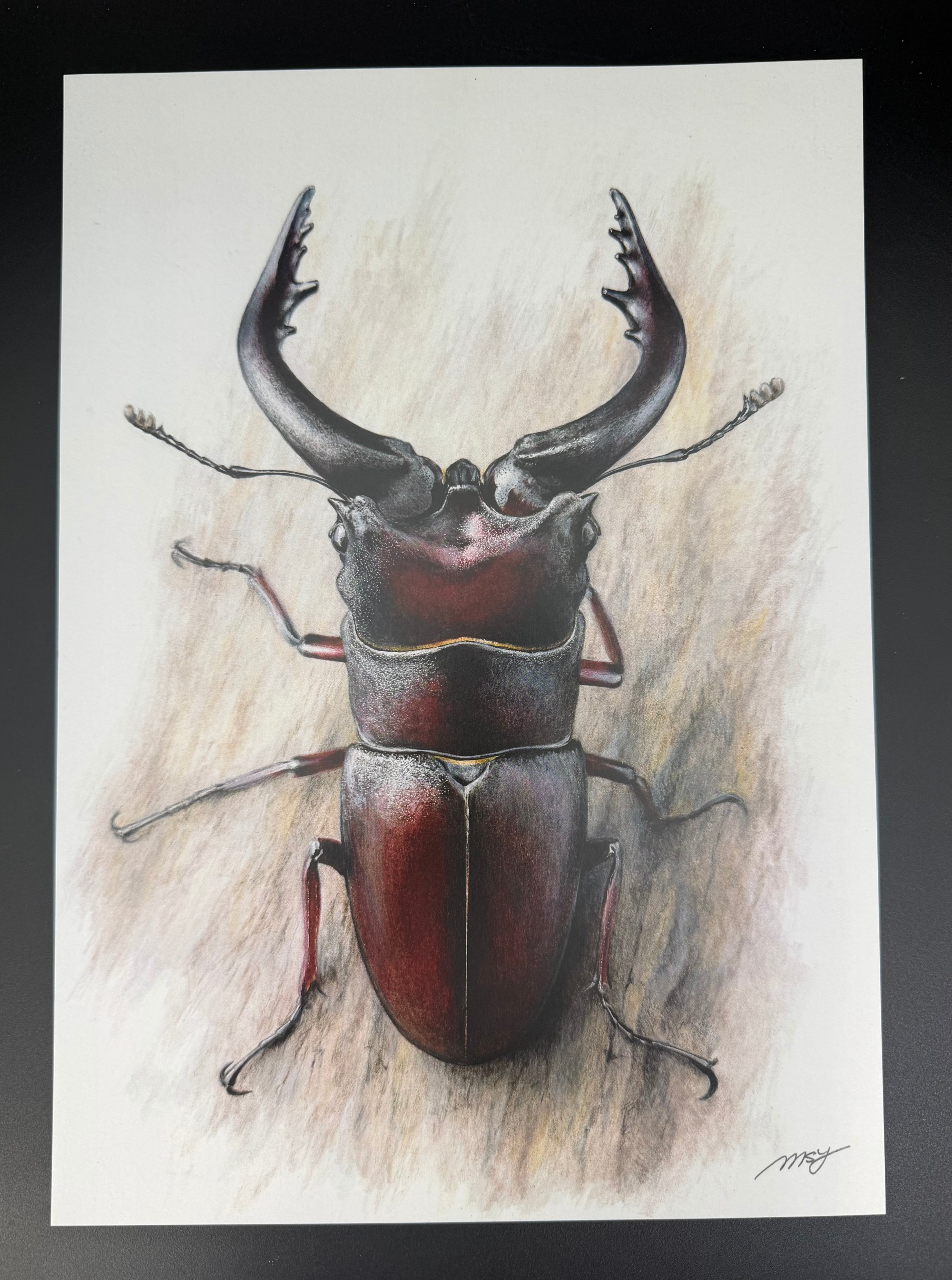 色鉛筆画 1枚 ノコギリクワガタ【複製画】