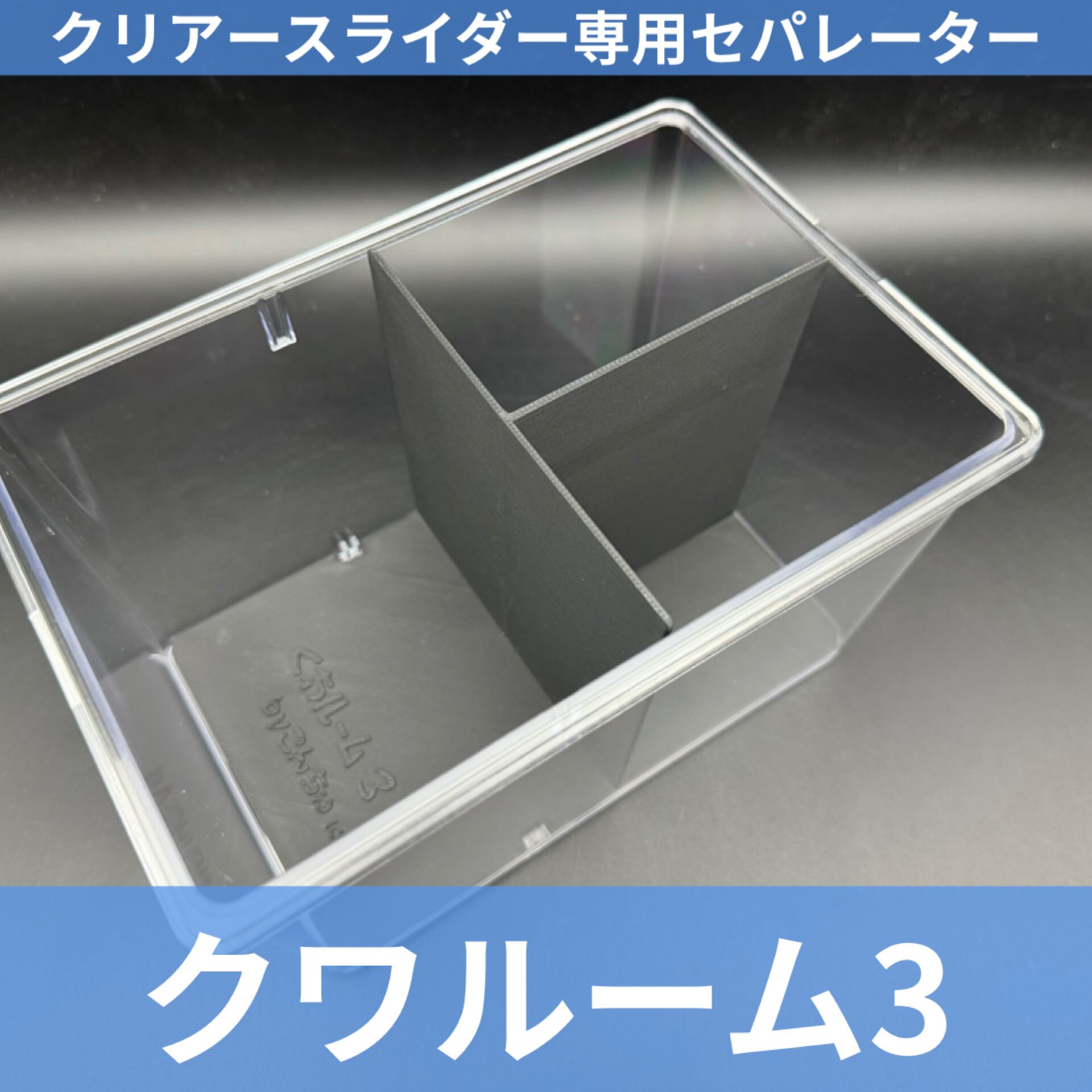 クリアスライダー(標準サイズ)にピッタリ設計された、ケース内を3部屋に分けて管理できる飼育便利グッズ。