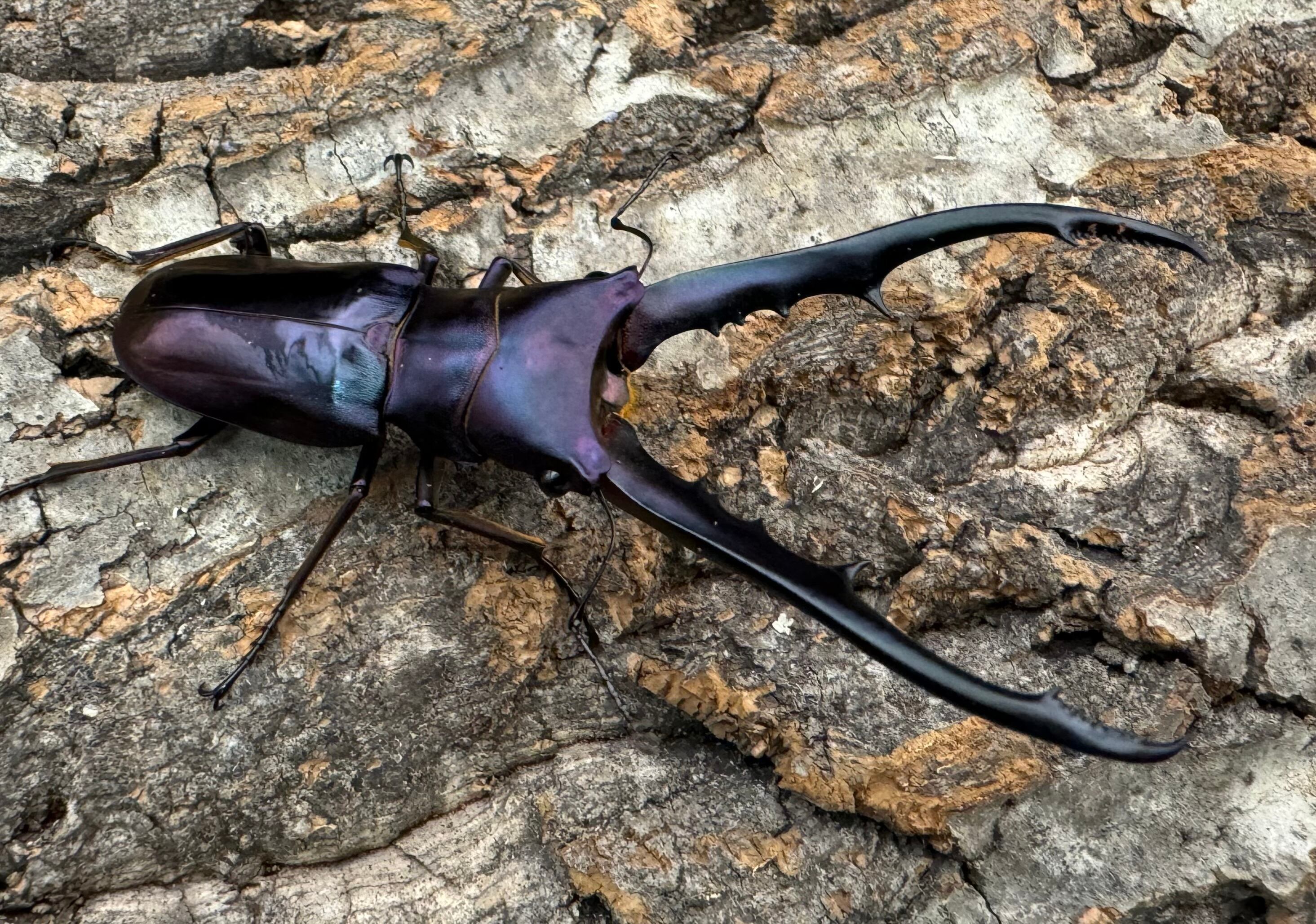 メタリは胴体よりも長い大アゴと、メタリックカラーが美しく大変人気のクワガタです。